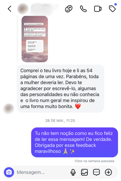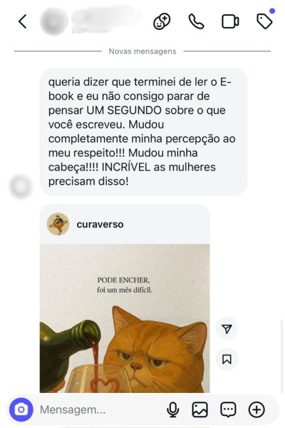 O eBook “Ame-se Para Ser Amada” nasceu como um convite para esse reencontro com o amor-próprio — uma jornada íntima, prática e profunda que já ajudou centenas de mulheres a se tornarem sua própria prioridade.